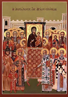 εορτάζουμε την αναστήλωση των ιερών εικόνων, που έγινε το 843 μ.Χ., καθώς και